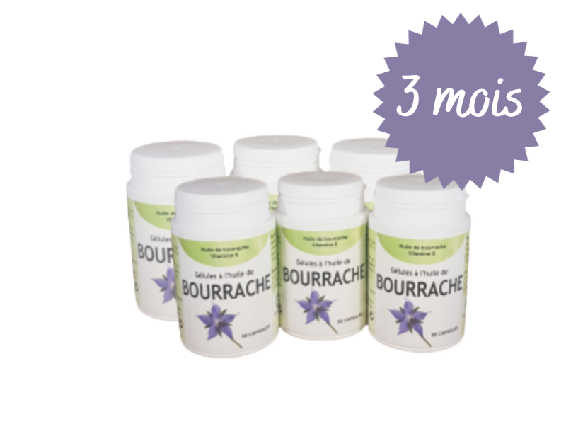• Cure 3 mois d’huile de Bourrache – 6 boites de 50 capsules